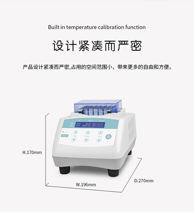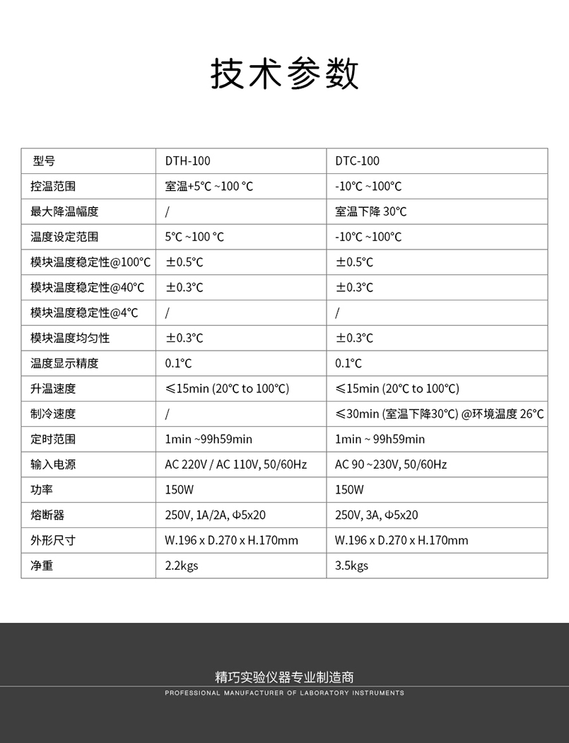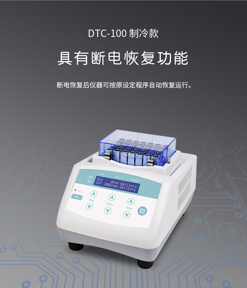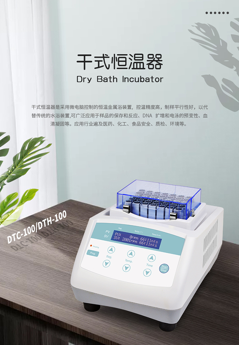 DTC-100 干式恒温器是采用微电脑控制的恒温金属浴装置, 控温精度高,制样平行性好,以代替传统的水浴装置,可广泛应用于样品的保存和反应、DNA 扩增和电泳的预变性、血清凝固等。应用行业遍及医药、化工、食品安全、质检、环境等。