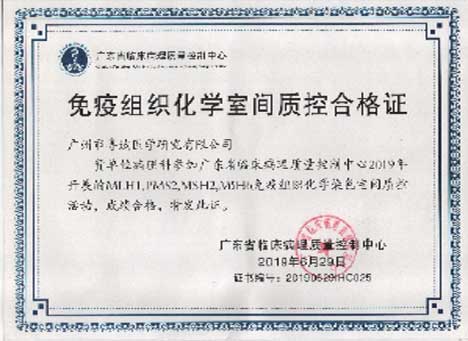 广东省临床病理质控中心免疫组化室间质控证书