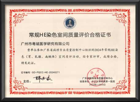 常规HE染色室间质量评价合格证书